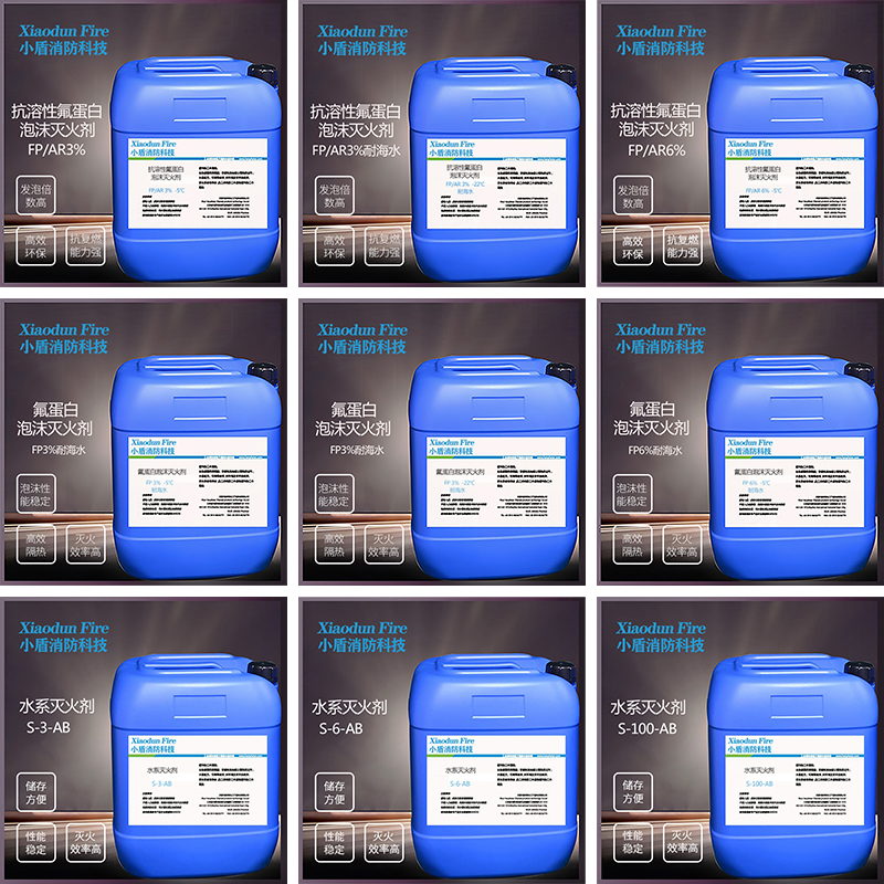 氟蛋白泡沫滅火劑是一種新型的泡沫滅火劑,在蛋白泡沫滅火劑中加入適量的氟碳表面活性劑制成。滅火劑具有獨特的疏油能力,流動性好,自封能力強,可與干粉滅火劑共用,其滅火效率是蛋白泡沫滅火劑的兩倍。與蛋白質(zhì)泡沫滅火劑相同的適用火災范圍。按與淡水或海水混合的體積比分為3%FP(3∶97)、6%FP(6:94)。